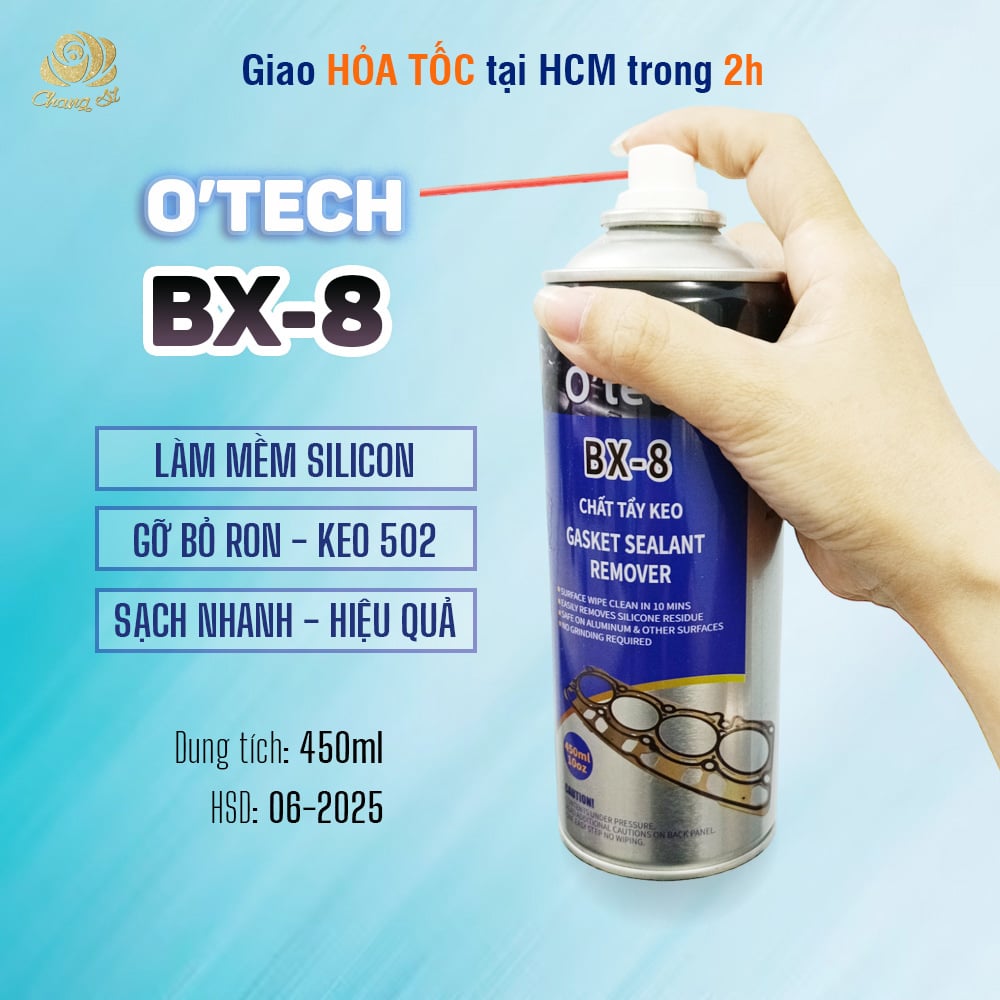 BX-8 Chất tẩy keo tẩy ron là một chất tẩy cực mạnh với công thức được nghiên cứu làm ra để nhanh chóng và dễ dàng loại bỏ phần keo và miếng đệm ron thừa lại – BX-8 bằng cách làm cho vật liệu mềm dẻo đi giúp dễ dàng cạo ra. Nó cũng có thể được sử dụng để loại bỏ các lớp phủ công nghiệp (sơn và vecni), chất kết dính, cặn carbon, dầu đã qua nung và mỡ khỏi bề mặt kim loại.