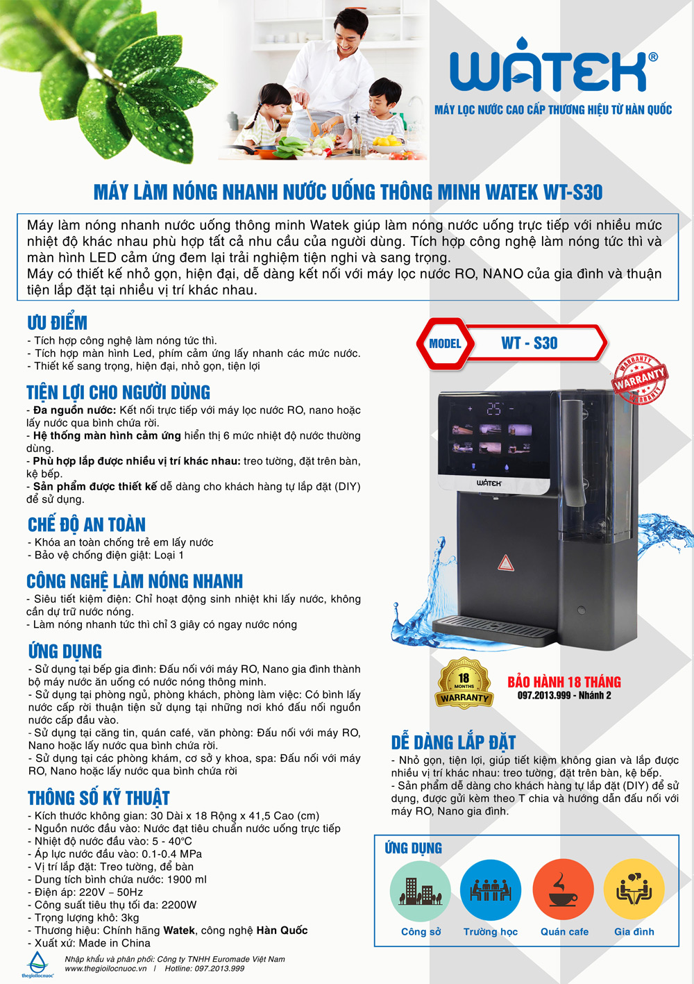 Máy Làm Nóng Nhanh Nước Uống Thông Minh Watek (Model WT-S30) – Nước Nóng 3 Giây