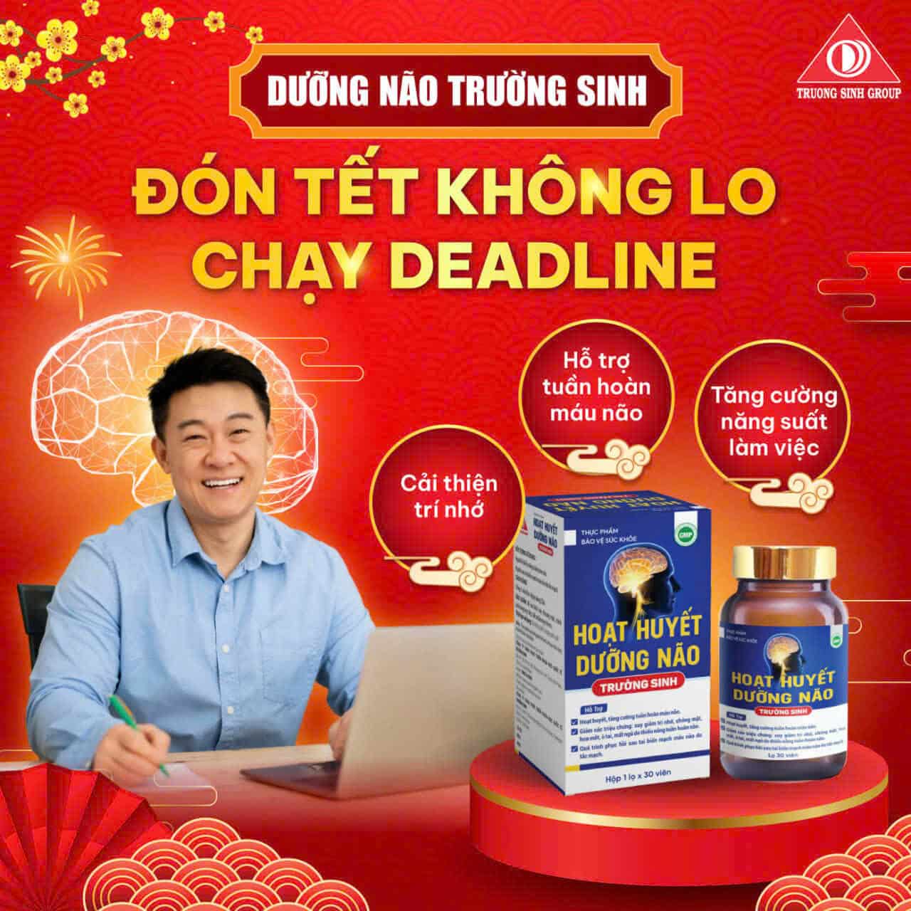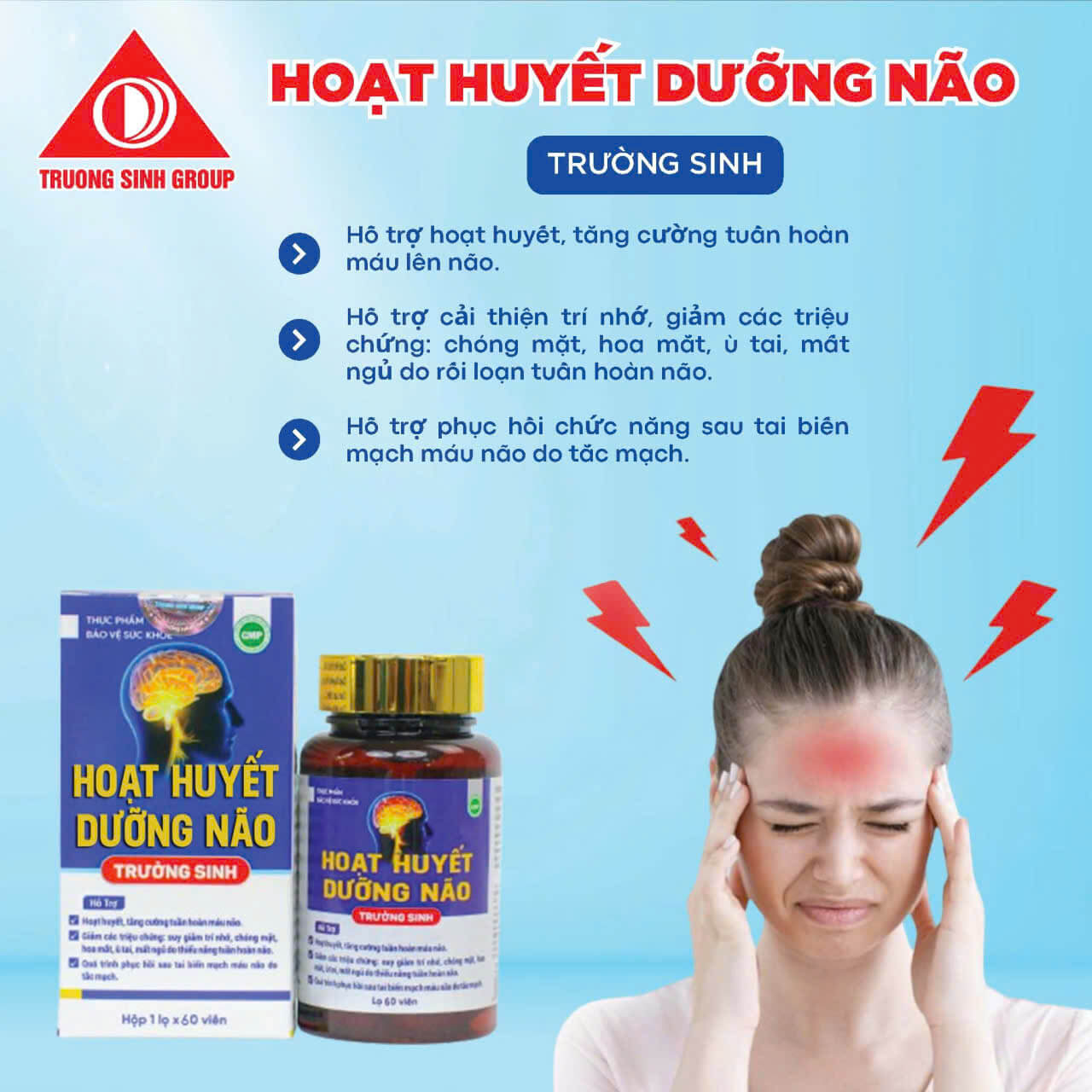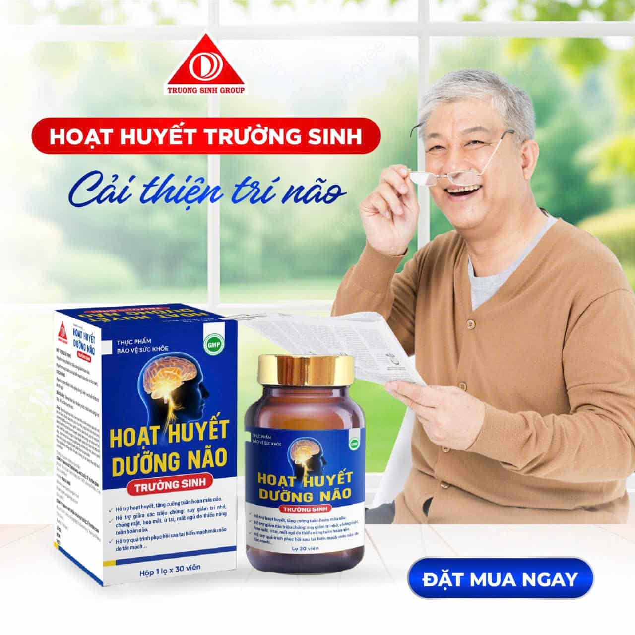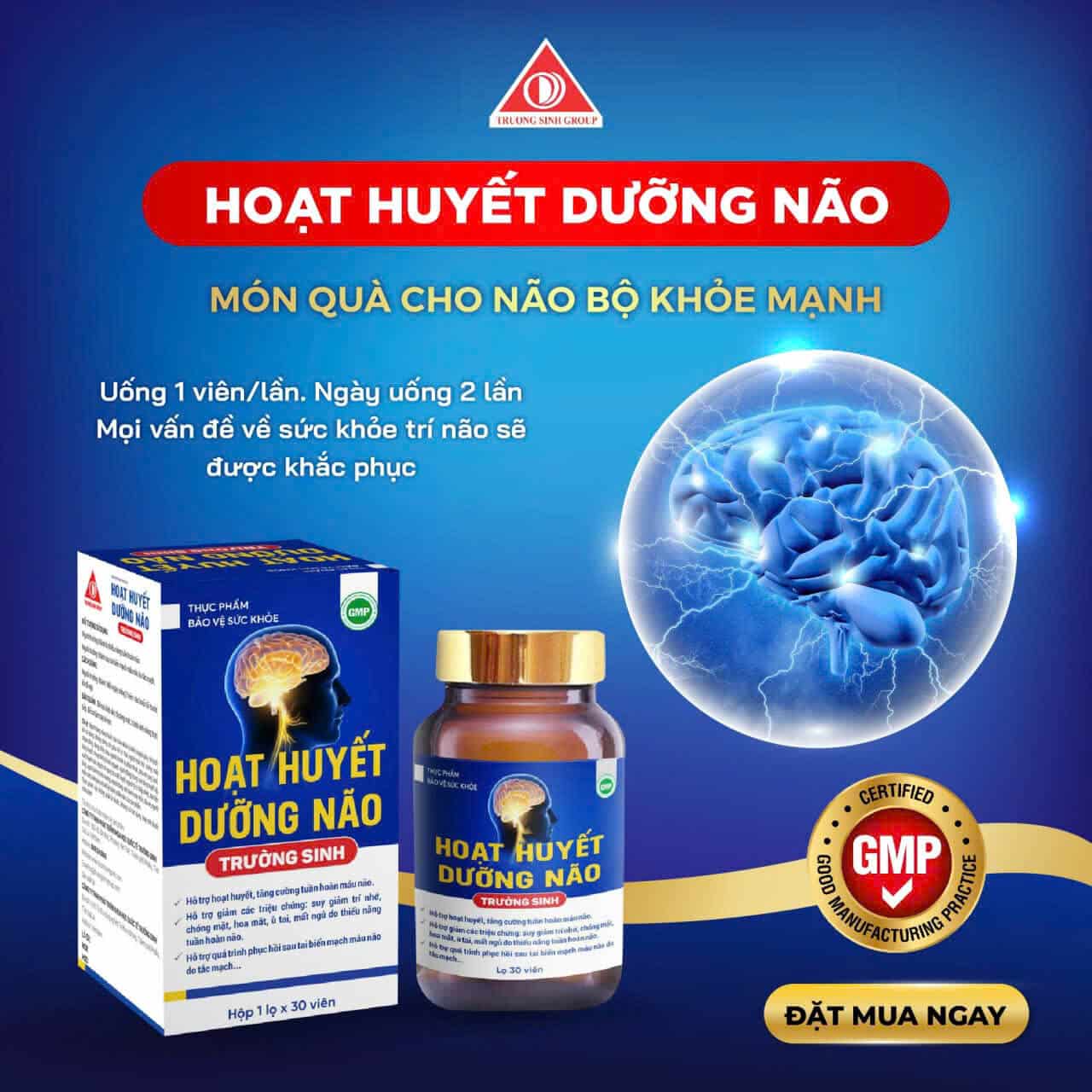 Đánh tan nỗi lo đau đầu, chóng mặt và mất ngủ với Hoạt huyết dưỡng não Trường Sinh. Sự kết hợp hoàn hảo giữa các thảo dược quý như Bạch quả, Đinh lăng và Nattokinase giúp tăng cường lưu thông máu não, cải thiện trí nhớ và bảo vệ hệ thần kinh hiệu quả. Sản phẩm là món quà sức khỏe ý nghĩa cho người cao tuổi và người làm việc trí óc căng thẳng.